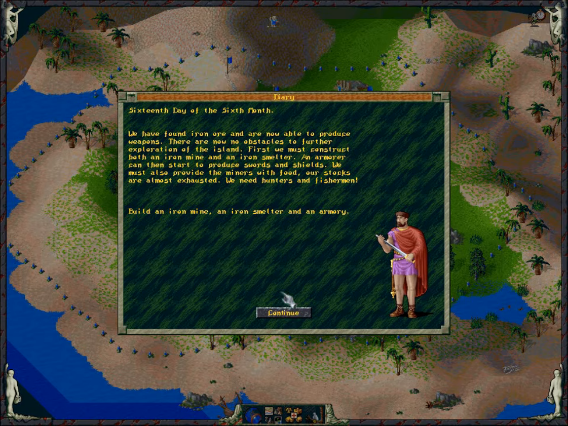 이 게임은 깃발을 꽂아 길을 생성하고, 그곳에 건물들을 지어 자원을 비축하고 그 자원을 재료로 다듬기도 하면서, 새로운 건물들을 생성하는 형태의 꼬리에 꼬리르 무는 경영 시물레이션입니다.