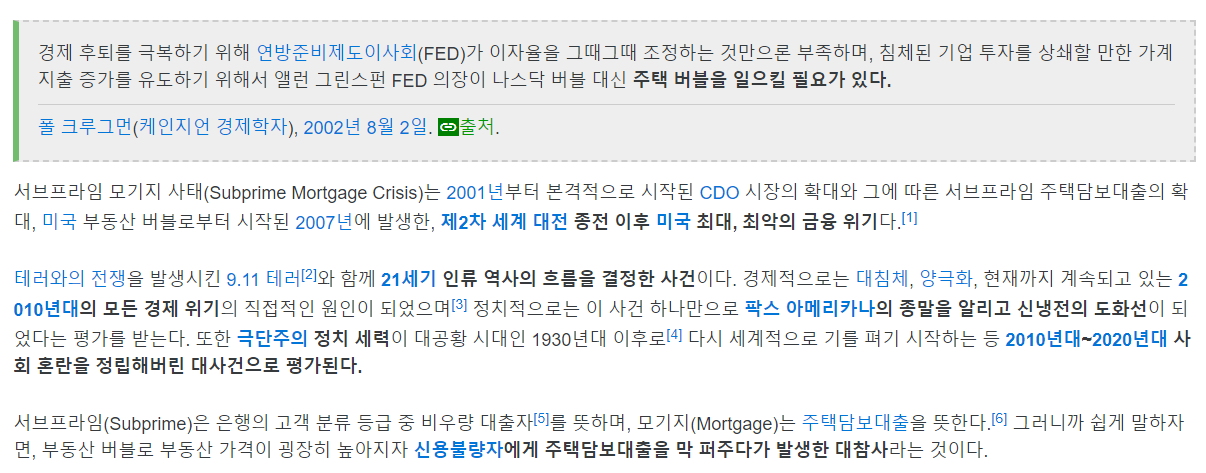 과거에 미국 서브프라임 모기지 사태(부동산),