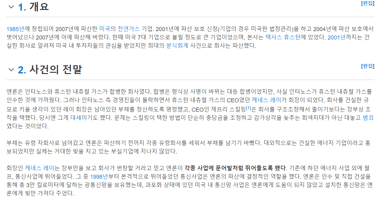 미국 에너지 그룹 7위 엘론 분식회계 사건 (주식)